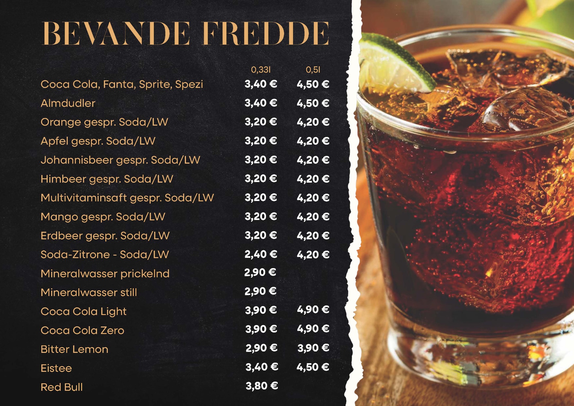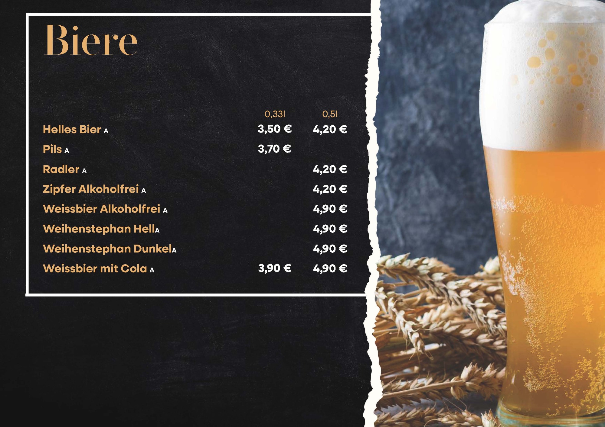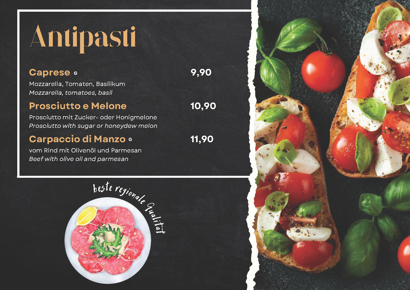 Speisekarte des Restaurants