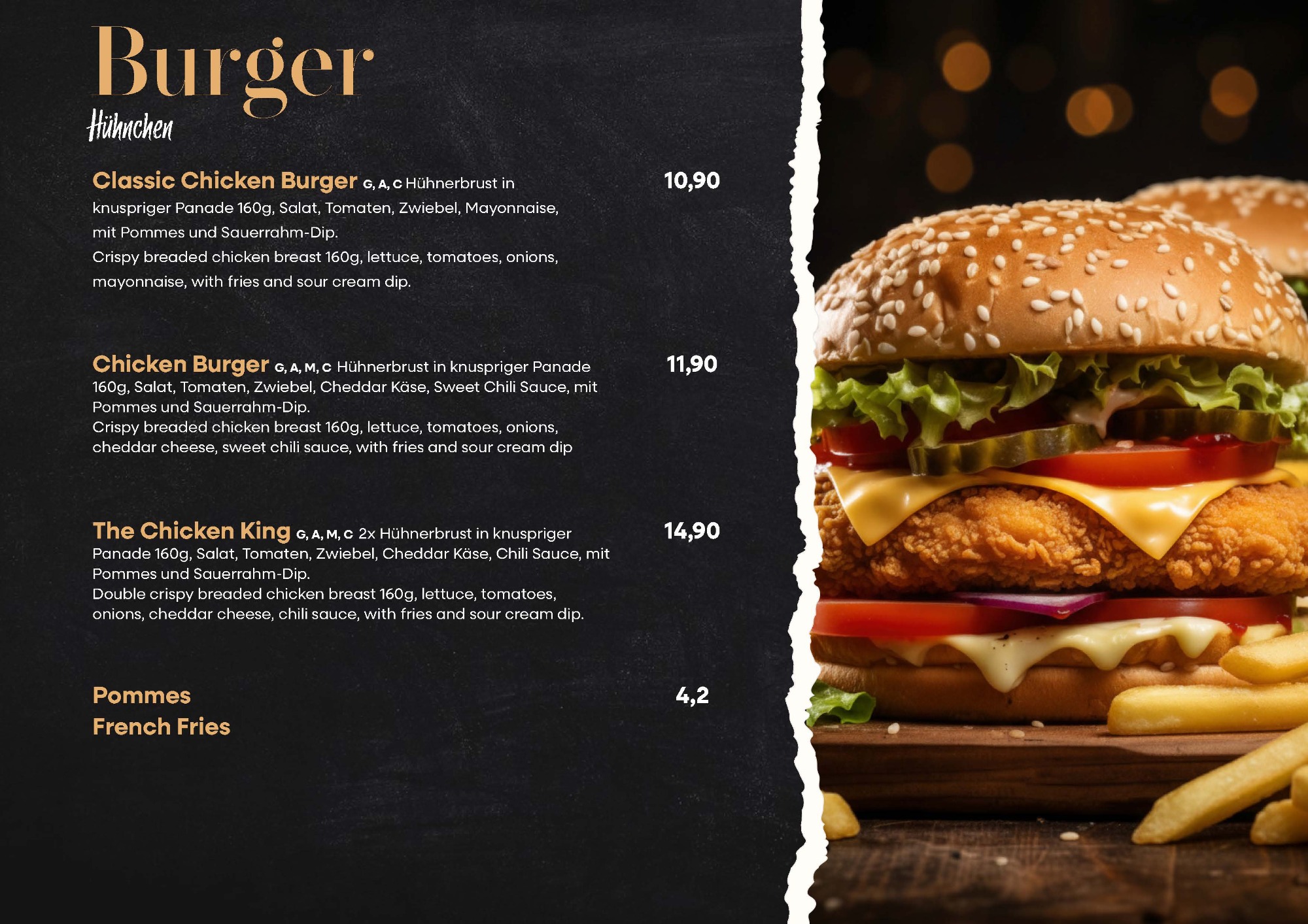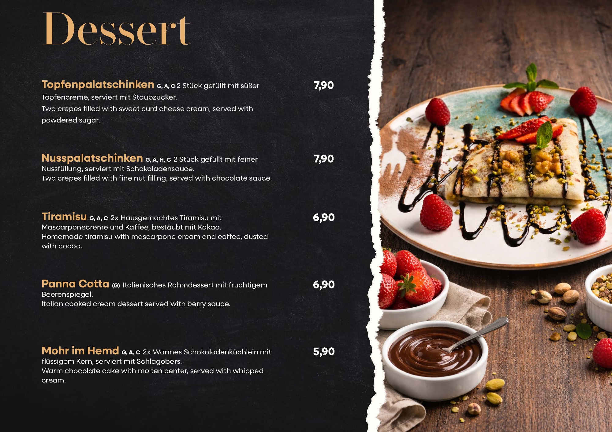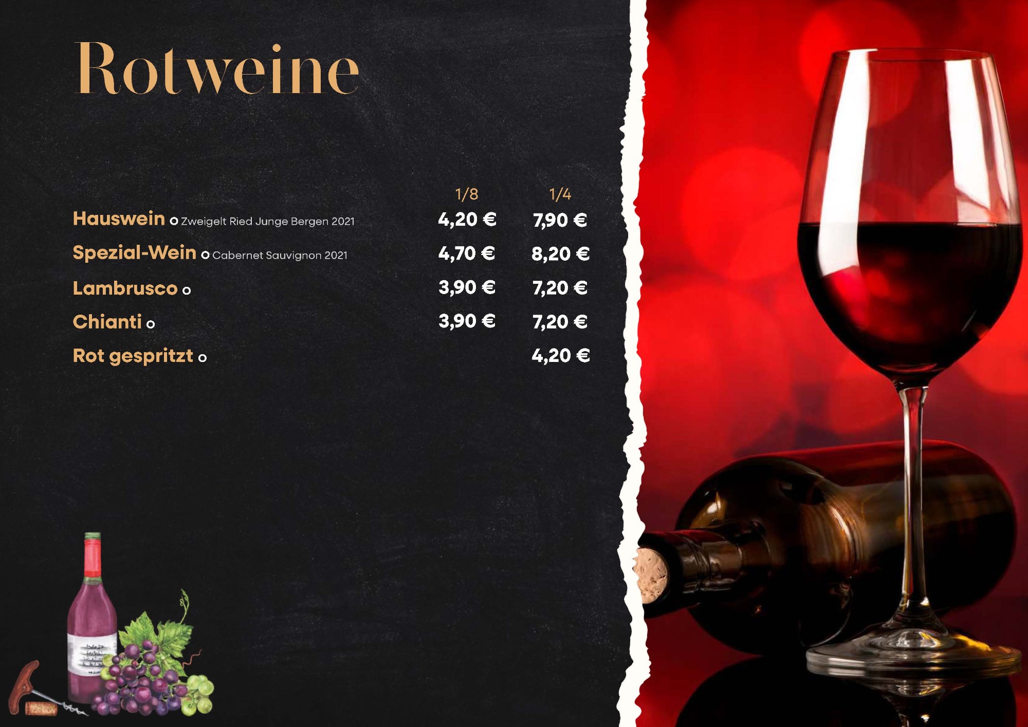 Speisekarte des Restaurants
