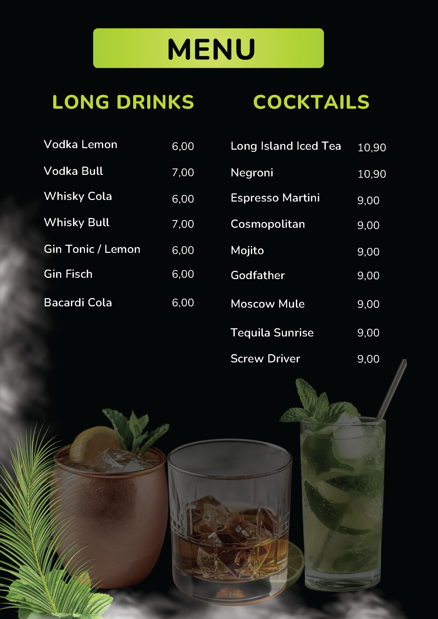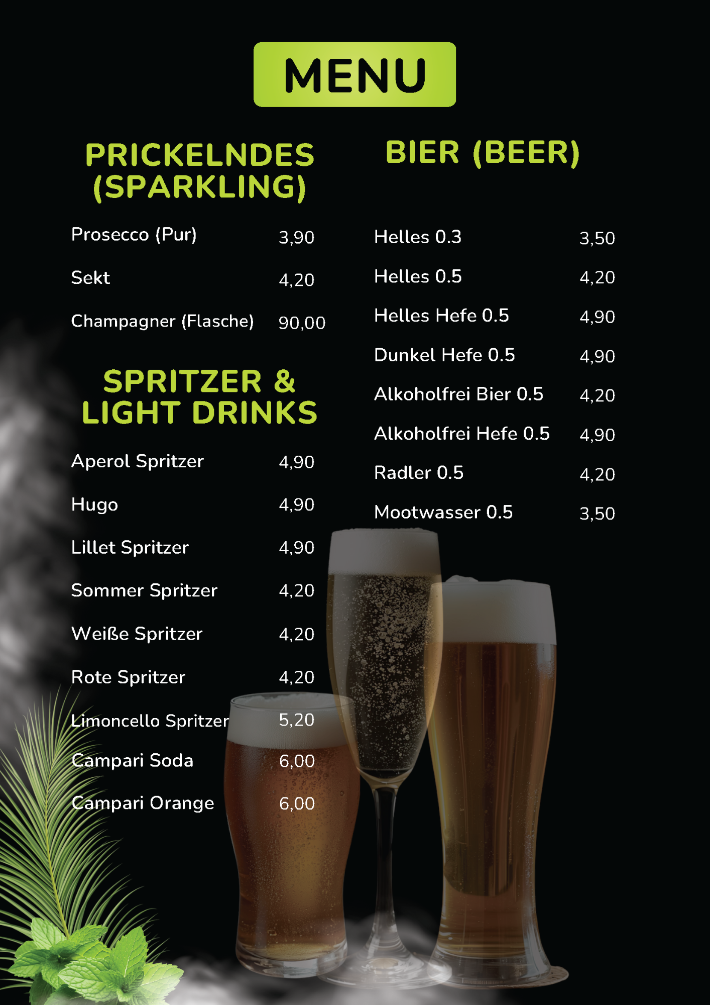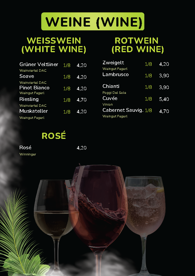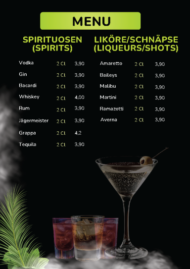 Speisekarte der Bar Lounge